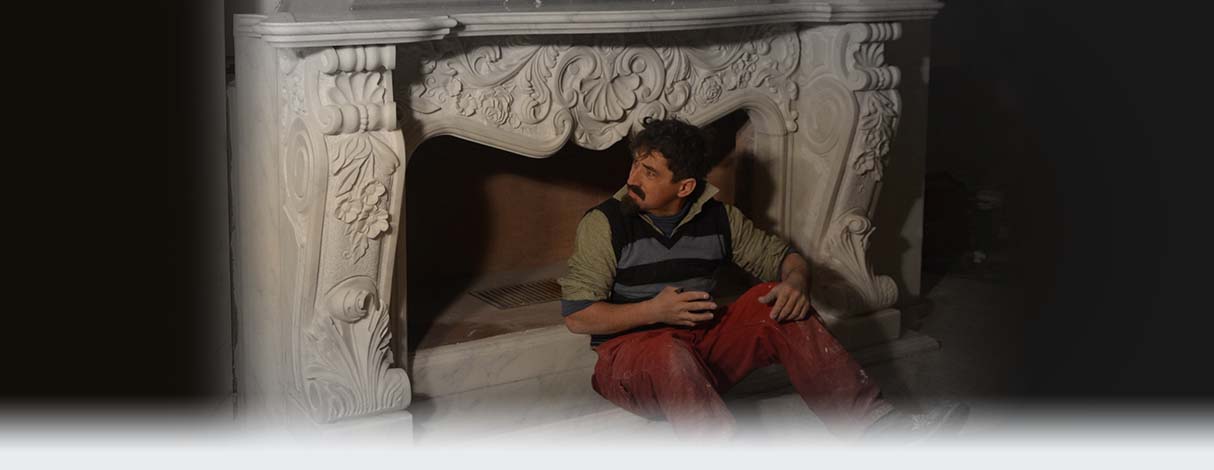 Semineu sculptat din marmura alba in stil baroc cu elemente florale